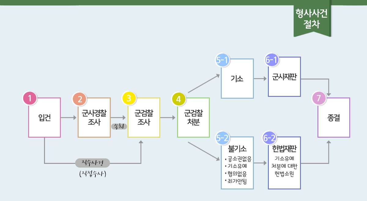 »ç°Ç Á¾°á±ÇÀº ±º °Ë»ç¸¸ÀÌ °¡Áö°í Àֱ⠶§¹®¿¡ 1Â÷ ¼ö»ç¸¦ ¸¶Ä£ ±º»ç¹ý°æÂûÀº »ç°ÇÀ» ±º °ËÂû¿¡ ¼ÛÄ¡ÇÏ°Ô µÇ°í, ¼ÛÄ¡¸¦ Çϸ鼭 ÀǰßÀ» Á¦½ÃÇÏ°Ô µË´Ï´Ù.