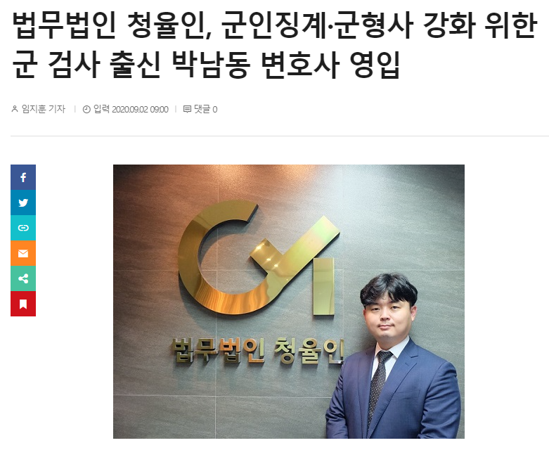 [½Ã»ç¸Å°ÅÁø] ¹ý¹«¹ýÀΠûÀ²ÀÎÀº ÇØ±º ±º °Ë»ç Ãâ½Å ¹Ú³²µ¿ º¯È£»ç(¿¬¼ö¿ø 43±â)¸¦ ¿µÀÔÇß´Ù°í ¹àÇû´Ù.