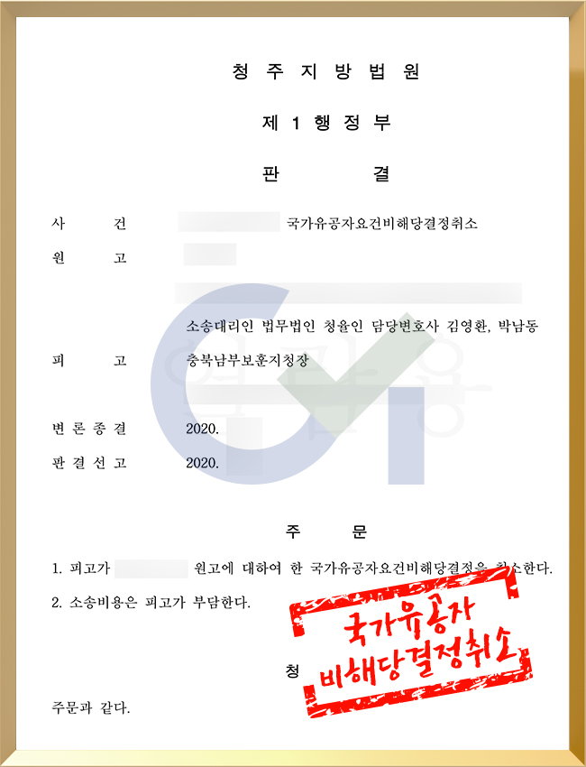 ±¹°¡À¯°øÀÚ µî ¿¹¿ì ¹× Áö¿ø¿¡ °üÇÑ ¹ý·ü¿¡ µû¶ó º¸ÈÆÃ³(Áö¹æº¸ÈÆÁöû)¿¡ ±¹°¡À¯°øÀÚ µî·Ï½ÅûÀ» ÇÏ¿´À¸³ª µî·Ï½ÅûÀÌ °ÅºÎµÈ °æ¿ì À̸¦ ´ÙÅõ´Â ÇàÁ¤¼Ò¼ÛÀÔ´Ï´Ù.